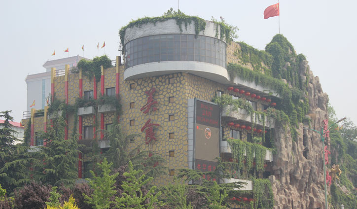 “唐人美食山”俗名“猴山”,坐落于保定市高新區(qū)天鵝路111號(hào)。是河北餐飲業(yè)中規(guī)模最大的專(zhuān)業(yè)性餐廳。家喻戶曉,遠(yuǎn)近聞名。整體建筑別具匠心,古今稱奇。抬眼望去,猶如一座巨大的盆景,有“都市里的山莊”之美譽(yù)。美食山大字金光閃閃,孫悟空雕塑栩栩如生,一面面彩旗迎風(fēng)飄揚(yáng),堪稱建筑史上的杰作。